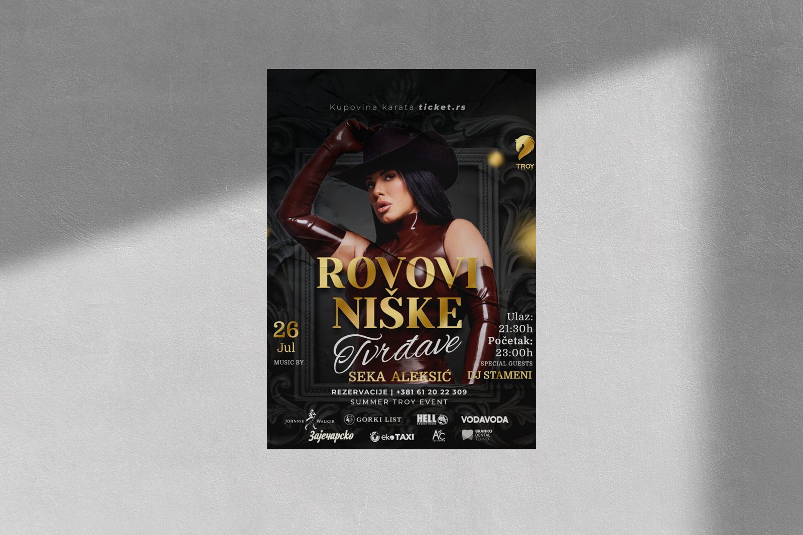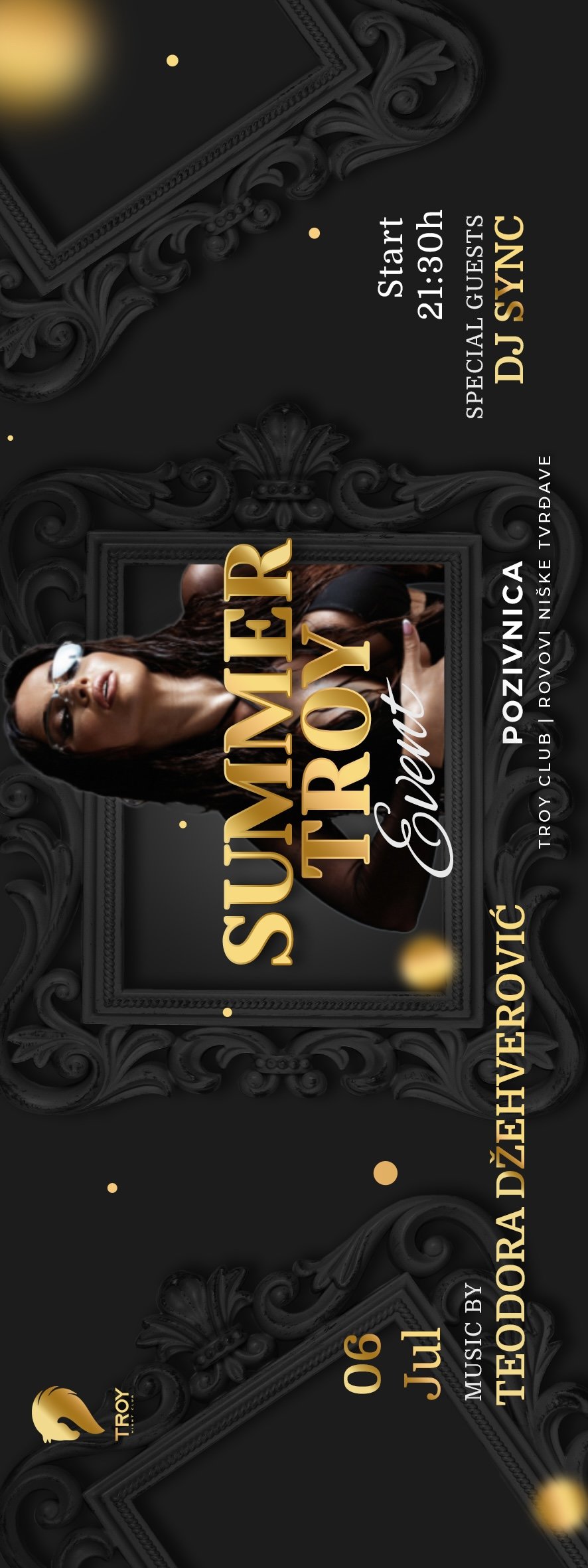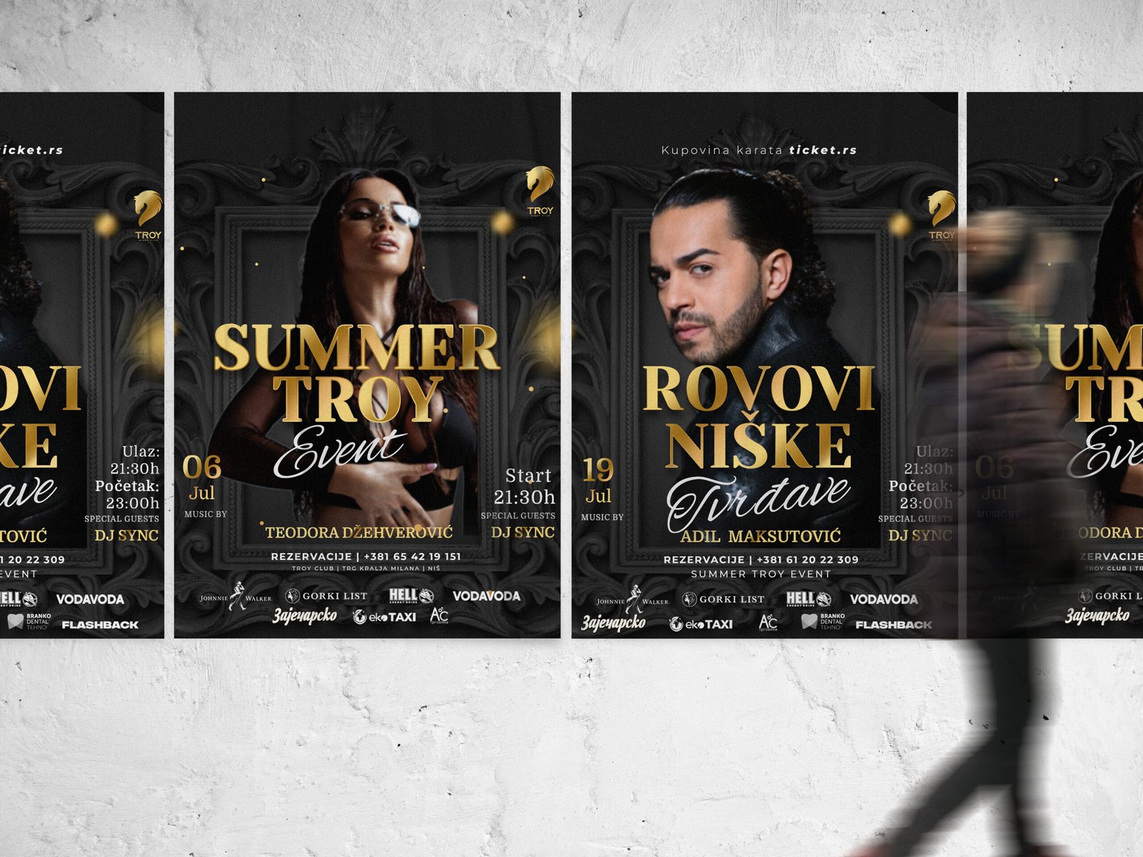 I was responsible for the complete visual and marketing direction of the Summer Troy Event concert series. This included poster design, social media visuals, digital ads, and ticket layouts. The design features a bold and elegant style with high-contrast elements, gold accents, and dramatic portraits to highlight the artists and elevate the luxurious summer vibe.